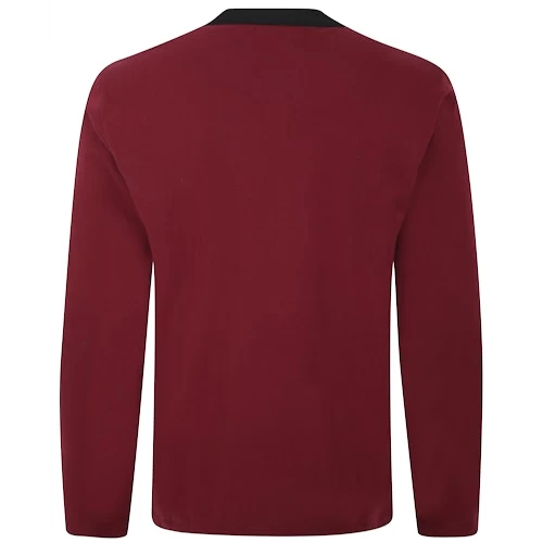 – Contrasting placket and collar